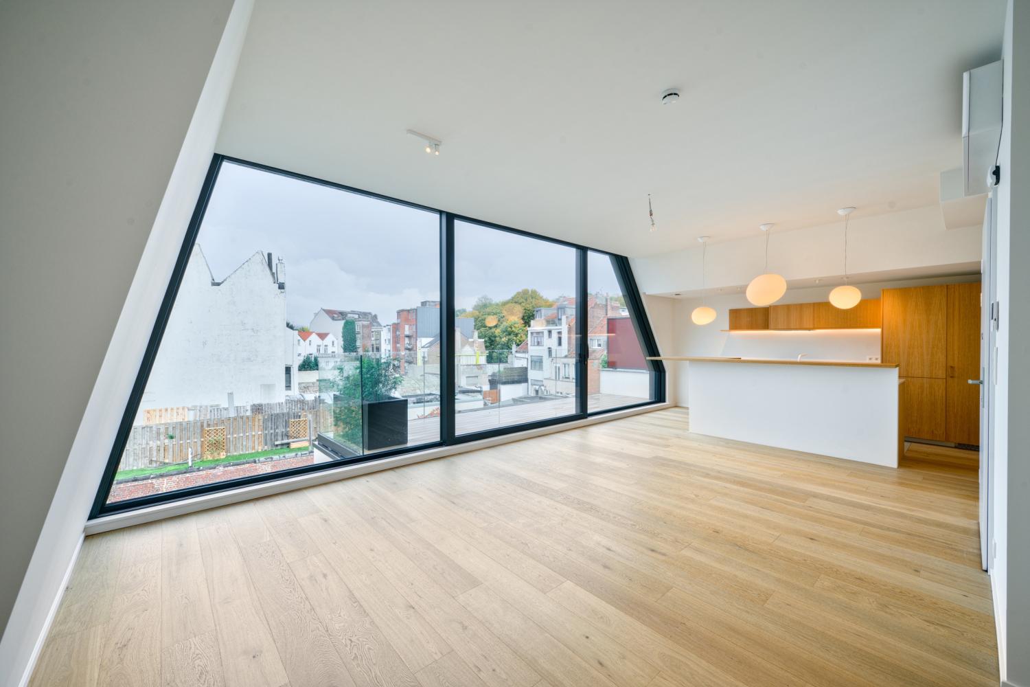 Proche du Bois de la Cambre, à proximité de tous les centres d'intérêts comme école, commerces, dans un nouveau petit immeuble de 4 appartements, beau penthouse de +/- 106 m² +terrasse +/-10 m² situé au 3ème étage. Belle réception, cuisine super équipée, 2 chambres, 2 salles de douche. Parking vélo. Ascenseur. PEB en cours. Régime TVA.